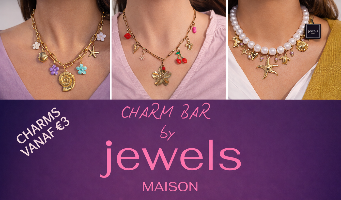 Let op: het aantal charms bepaal je zelf tijdens de workshop. De charms kosten €3 per stuk. XL statement charms zijn €5 per stuk, en charms met echte gedroogde bloemen €7 per stuk.